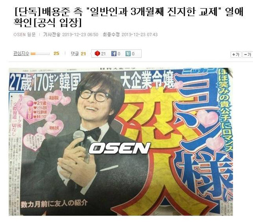 Thông tin Bae Yong Joon hẹn hò được đăng tải trên mặt báo.